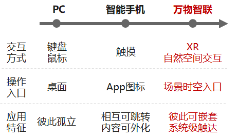 交互方式上,从触摸式交互演进为时空自然交互;任务调度上,从单节点调度,变成端到端确定性调度;算力资源上,从通用算力,变成多样性融合的算力资源;同时随着社会对隐私保护和数据安全的需求日益增强,还可能会有一些新的数字身份与核心信用体系诞生。