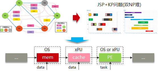 第五个思考有关操作系统的资源管理。前文提到操作系统与系统工程中的运筹学有很多相通之处。如操作系统资源统筹调度的问题,如果在数学上进行抽象,和运筹学中 作业车间调度问题 (JSP) 与背包问题 (KP) 这两个 NP 难问题是比较相近的。通过一定的转化规约,可将资源统筹调度问题变成一个多对象、多目标优化的实时在线 JSP 问题。