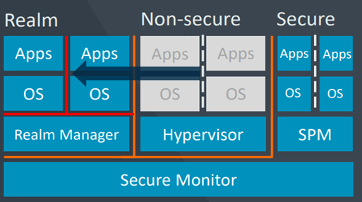 以 ARM 2021 年发布的 V9 CCA 架构规范为例,可看到 Realm 架构更多考虑从应用视角出发,如何提供一个安全的机密计算执行环境。从过往来看,ARM 每 10 年会有一次大的架构创新,其 CCA 架构对面向 2030 的信任体系影响是巨大的。操作系统的信任范式也很有可能会被重新定义,例如 ARM V9 CCA 架构正是从“信任设备、不信任应用”,演进到“信任自己的应用,但不必信任基础设施提供商”。