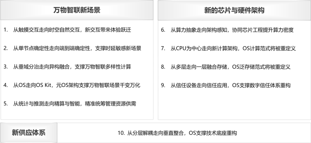 面对新的全球形势,软硬件的先进要素供应可能会呈现出多元化供应体系,这反过来也会对操作系统的演进带来很大影响。