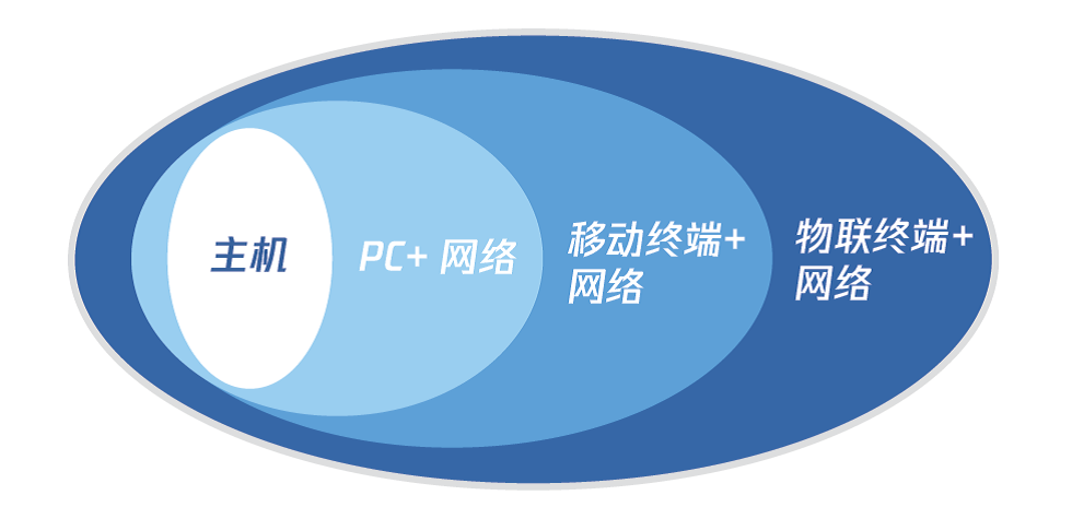 泛在操作系统的命名来自于操作系统随着技术发展的不断延伸与泛化,即从主机计算操作系统、个人(桌面)计算操作系统、移动计算操作系统、到泛在计算操作系统的不断泛化。未来网络化的泛在操作系统所管理的终端包括主机、PC端、物联终端,不同发展阶段有各自的侧重点,当前,随着“人机物”的融合发展成为重点,目前泛在操作系统发展重点是物联终端的接入与管控,以及用以支撑包括物联终端的各类网络应用开发运行支撑平台(如图1)。