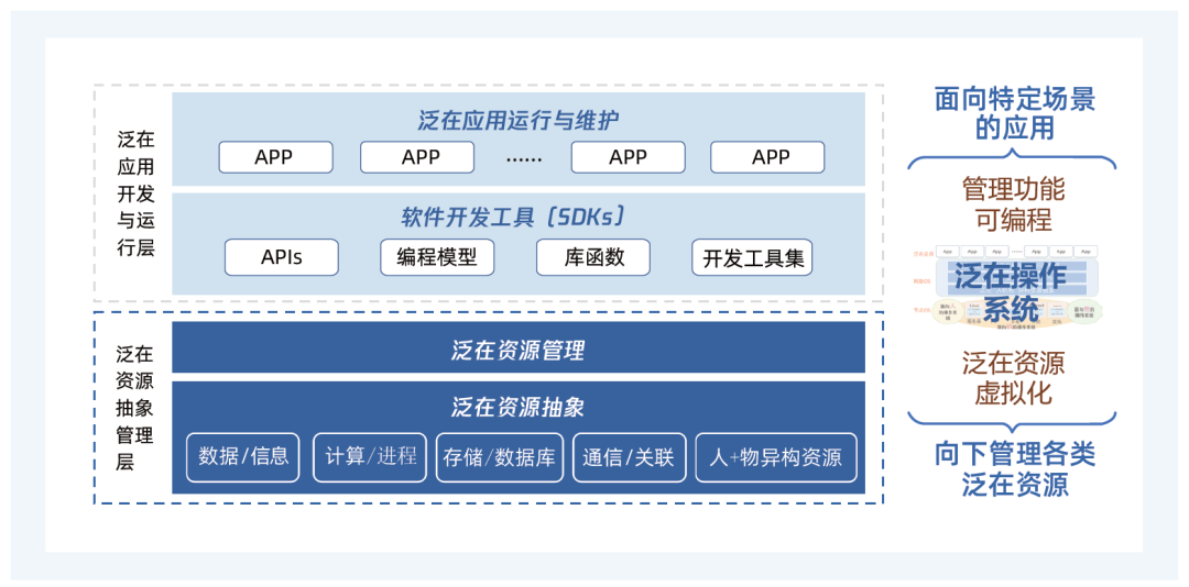 实质:面向新型人机物融合泛在计算的一类新型操作系统,体现了在新的计算环境和应用场景下,对传统操作系统概念的延伸与泛化。