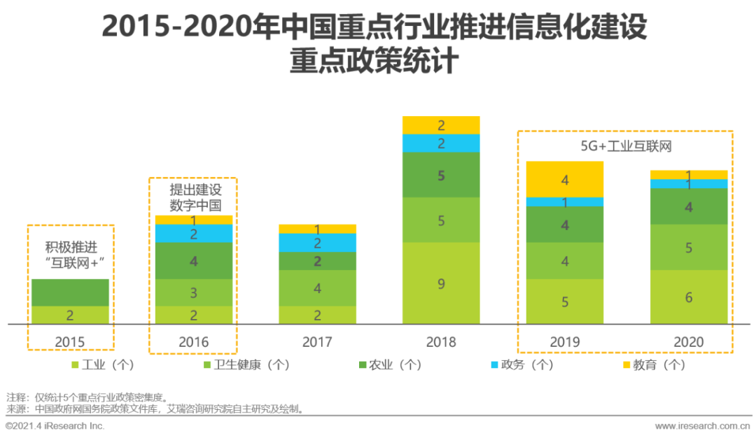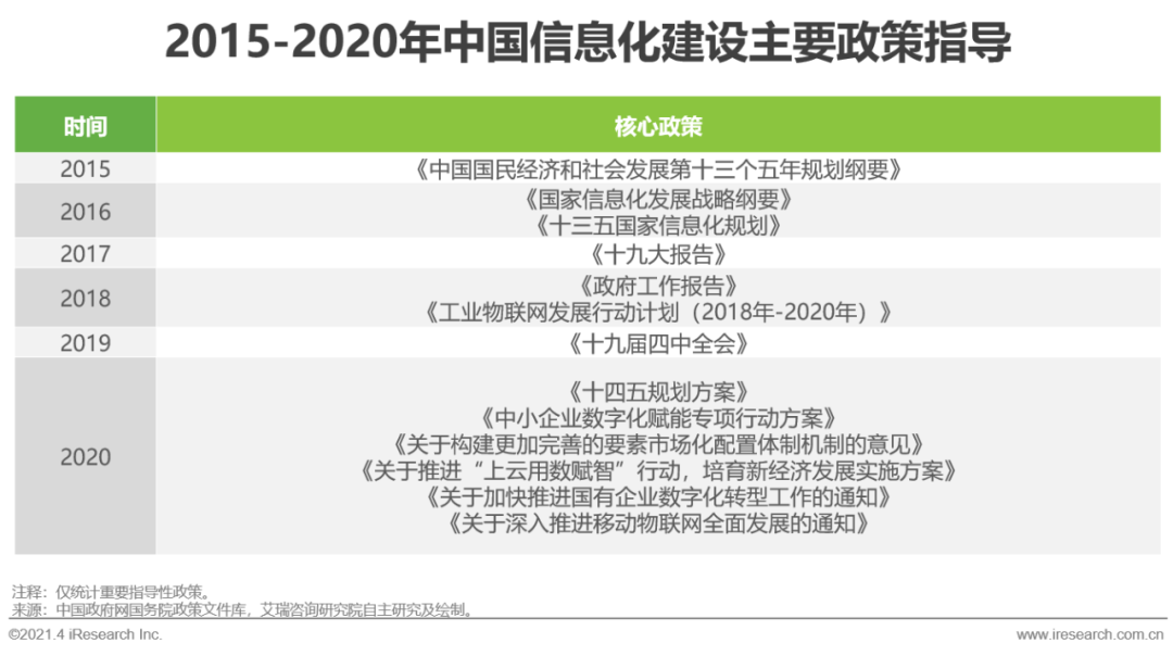 各行业陆续颁布核心政策,为信息化转型提供支持和引导