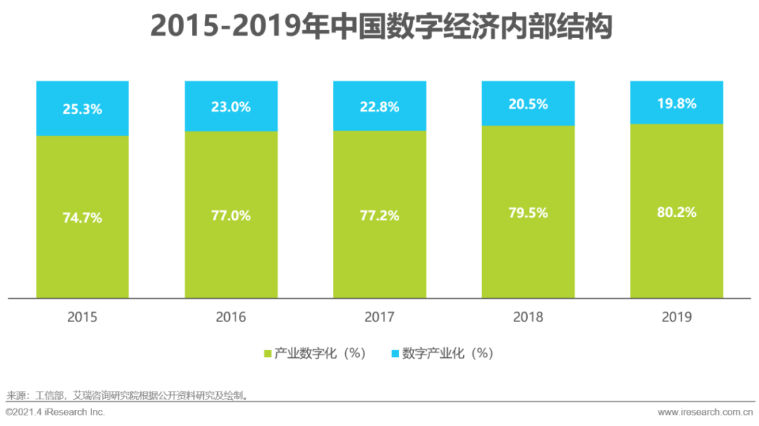 我国数字经济维持高速增长,在信息通信新技术、新业态的带动下,传统行业焕发出新的活力,质量效益显著提升,2019年数字经济对GDP增长的贡献率达到67.7%,已经成为国民经济增长强大的引擎之一。数字产业化和产业数字化是数字经济发展的核心。数字产业化不断演进升级,与服务业全面融合发展后,正向实体经济范围拓展。产业数字化从单点应用向行业协同发展演进,利用数字技术进行全方位、全链条的降本增效,促进高质量发展,成为数字经济越来越重要的增长动力。“两化”协同发展,数字经济内部结构持续优化,为市场创造新动能的同时也带来了新的挑战,如何价值化数据并与传统生产要素融合,驱动传统产业向信息化、智能化转型升级,已经成为数字经济发展的关键问题,这既是挑战也是机遇,所以加快推进数据价值化进程是企业发展的本质要求。