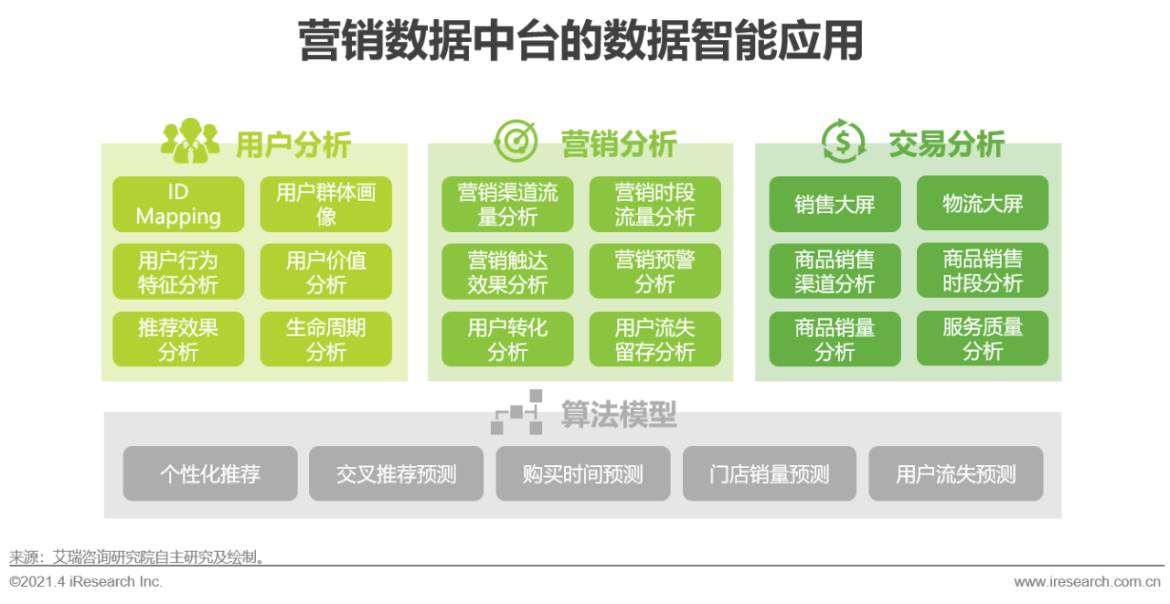 营销数据中台在集数据采集、融通聚合、管理服务等功能于一体的基础上,基于场景的特点开发专门的数据模型、标签体系等多种数据智能应用,构建用户360°全景画像,深入洞察目标客群特征,分析交易销售数据及营销效果,助力企业实现基于智能营销和消费者智能运营及管理的数据管理、洞察分析和决策支持。