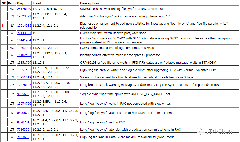 8 log file sync等待事件相关的oracle bug遇到过哪些?