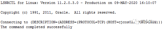 [oracle@cjcos02 admin]$ lsnrctl reload
