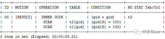 gbase> explain select t1.aid,t2.bid from t1 inner join t2 on t1.gid=t2.gid and t1.gid=100;