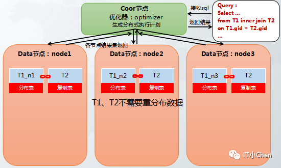 或者 t1随机分布表,t2 hash分布表或随机分布表,其中t2数据量很小,可以基于t2表在各个节点上生成一个t2的复制表,然后t1和t2的复制表进行关联,既将执行计划变成分布表join复制表。