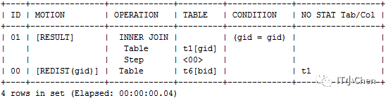 gbase> explain select t1.aid,t6.bid from t1 inner join t6 on t1.gid=t6.gid;