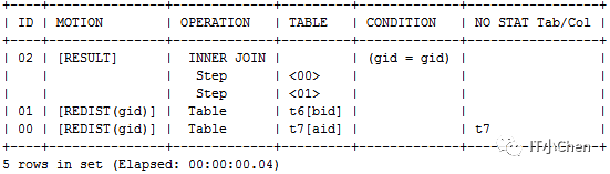 gbase> explain select t7.aid,t6.bid from t7 inner join t6 on t7.gid=t6.gid;