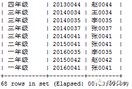 gbase> select distinct a.class_name,b.sno,b.sname
