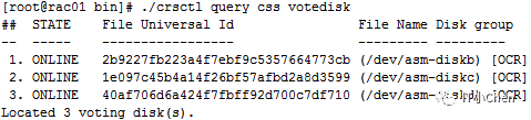 [root@rac01 ~]# cd /u01/app/11.2.0/grid/bin/