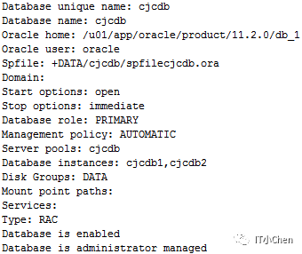 [root@rac01 bin]# ./srvctl config database -d cjcdb -a