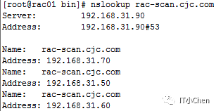 [root@rac01 bin]# nslookup rac-scan.cjc.com