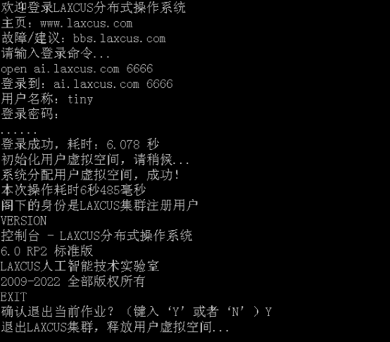这一点和Unix、Linux等操作系统的设计完全不同。在Unix/Linux上,每个人的身份可以随时切换,比如一个登录者以普通用户身份登录,如果他需要执行更高权限的工作,切换到root用户状态,使用“su”命令就可以完成。但是在Laxcus分布式操作系统上,不允许这样操作,用户的身份,在他登录成功那一刻即被确认,没有切换的机会。