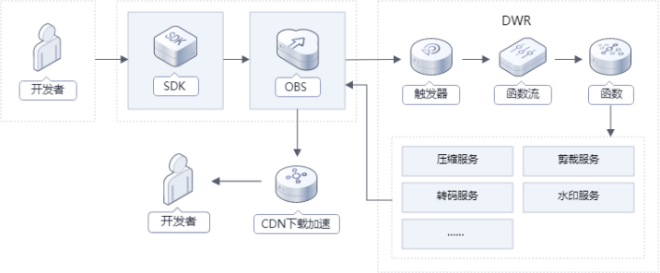 DWR支持异步和同步两种方式启动工作流:通过事件触发器启动工作流为异步方式;通过API启动工作流同步和异步都支持;通过事件触发器异步启动工作流通过API异步启动工作流通过API同步启动工作流。DWR还提供了REST(Representational State Transfer)风格API,支持您通过HTTP/HTTPS请求调用,在云上实现图像、视频、文档、图片等数据处理业务。