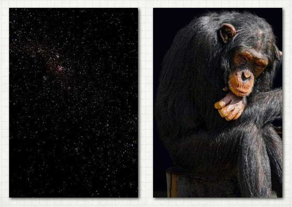 我们知道图片是由许多像素点构成的,所以直接对比位图的每一个像素点是可以判断图片的相似性的,但是这个方案显然不是那么高效,甚至不会那么有效:一张夜空的图片和一张黑猩猩的图片只有颜色构成相似,内容则完全不同。