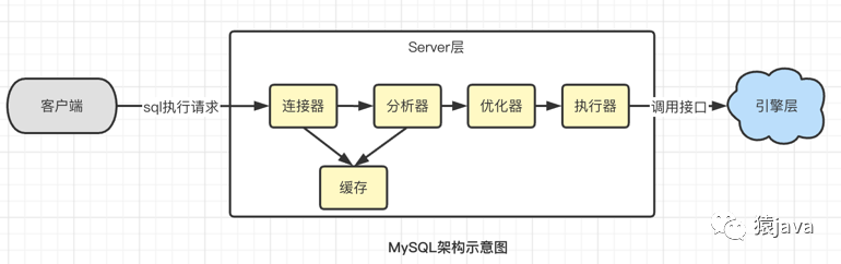 MySQL 是典型的 C/S 架构,SQL 整个执行流程包括:客户端,Server 层和存储引擎层 三部分。