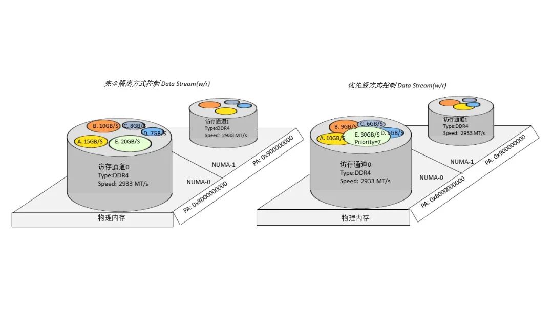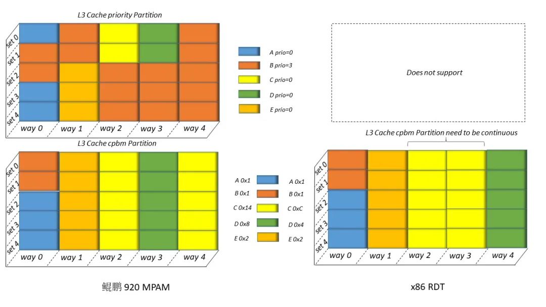 - 从体系结构角度优化·最佳配置,在对访存流的限制上,MPAM 流控方式可精确控制访存流百分比,可以确定性地保障访存敏感型业务的性能。