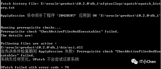 打补丁过程中遇到如下报错,直接将oci.dll文件重命名即可;