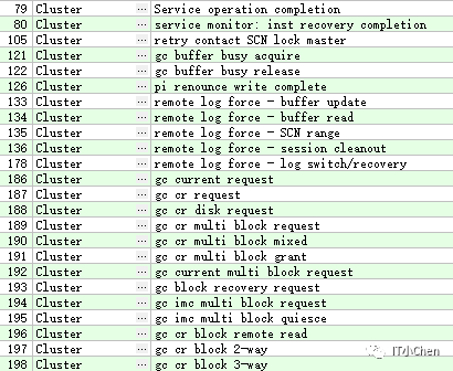 此类等待事件和Oracle RAC的资源有关(比如,gc cr block busy等待事件)。