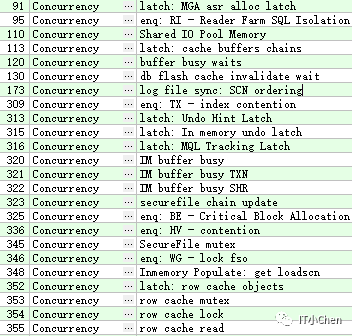 非空闲等待事件,专门针对Oracle的活动,指数据库任务或应用运行过程中发生的等待,这些等待事件是调整数据库的时候应该关注与研究的。
