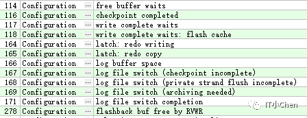 此类等待事件是由数据库或实例的不当配置造成的(比如,重做日志文件尺寸太小,共享池的大小等)。
