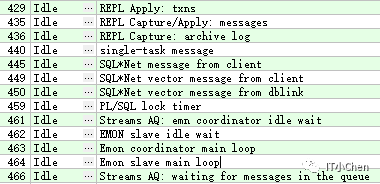 等待事件可分为空闲的、非空闲的两大部分。在非空闲的等待事件,又可进一步划分细的类别。