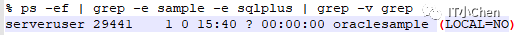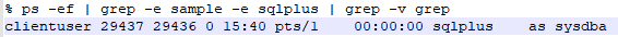 在客户端主机上,对sqlplus或sample进程的搜索只显示sqlplus客户端进程:
