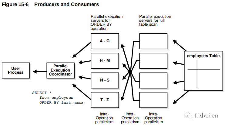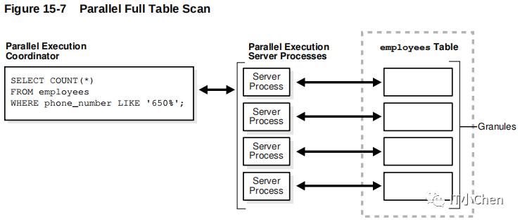 在并行执行中,服务器进程充当查询协调器(也称为并行执行协调器)。
