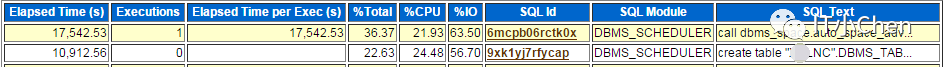 查看问题期间AWR报告,发现有一条CTAS语句特别耗时