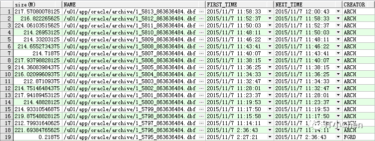 如果都是工作时间内产生的归档,可能是正常业务操作产生的归档,具体分析业务操作对应的表,SQL信息等,通常情况需要增加存储空间;