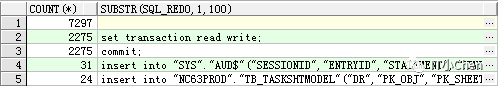 select count(*),data_obj# from test.test1 where sql_redo is null group by data_obj# order by 1 desc;