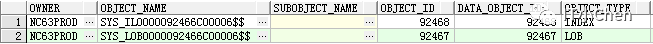 ---查询具体对象类型(OBJECT_TYPE 为LOB)