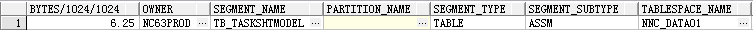 dba_segments a where owner='NC63PROD' and segment_name='TB_TASKSHTMODEL';