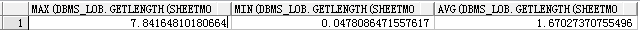 avg(dbms_lob.getLength(sheetmodel) / 1024 / 1024)