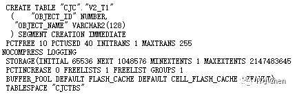 SQL> select dbms_metadata.get_ddl('TABLE','V2_T1','CJC') from dual;