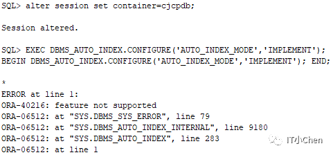 ORA-40216: feature not supportedORA-6512: at "SYS.DBMS_SYS_ERROR", line 79ORA-6512: at "SYS.DBMS_AUTO_INDEX_INTERNAL", line 9180ORA-6512: at "SYS.DBMS_AUTO_INDEX", line 283ORA-6512: at line 1