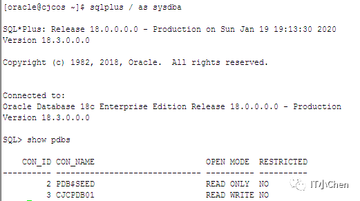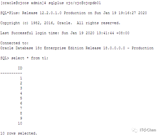 [oracle@cjcos ~]$ export ORACLE_SID=cjcdb01