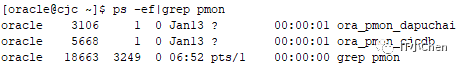 oracle 4326 1 0 23:05 ? 00:00:00 ora_pmon_cjcdb