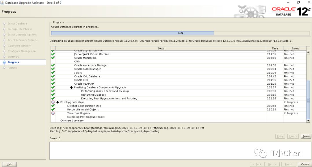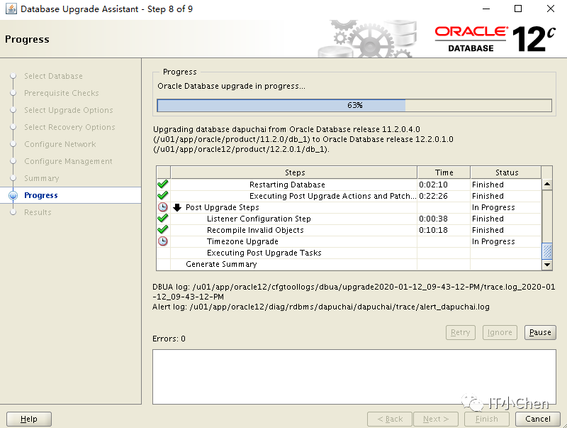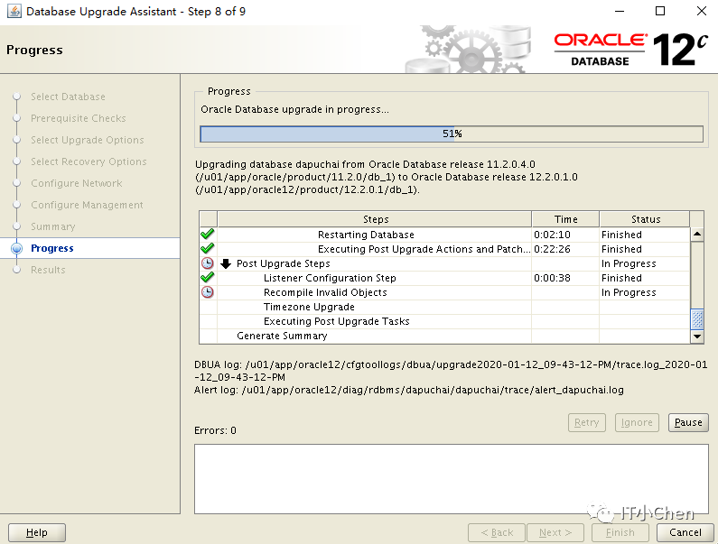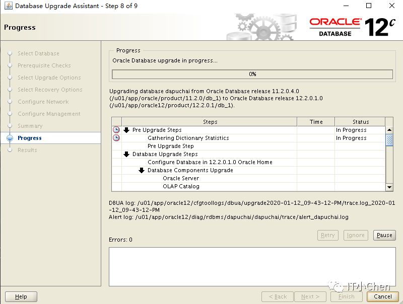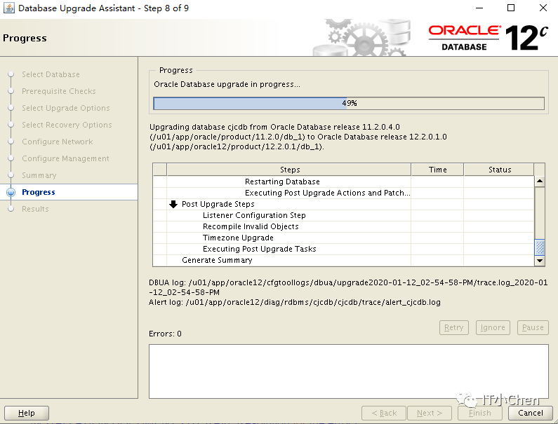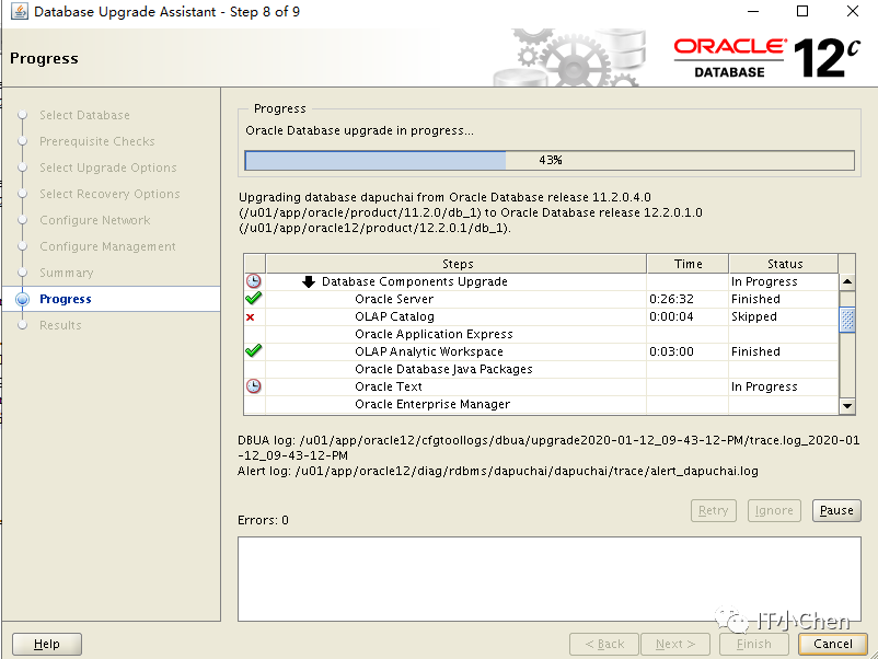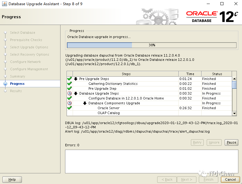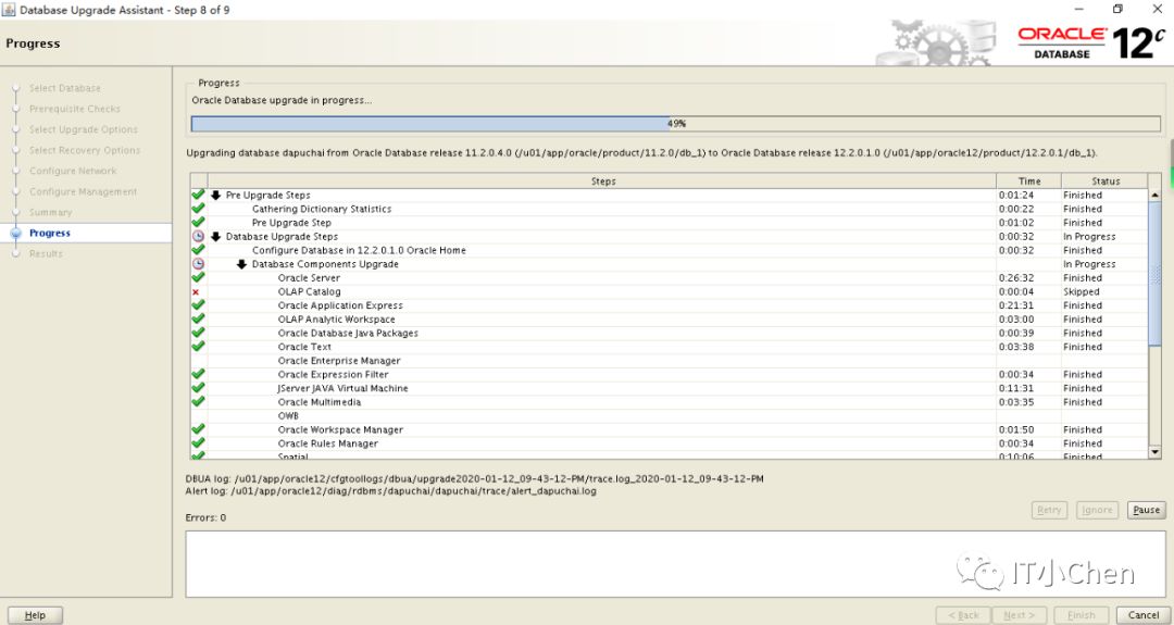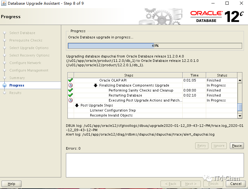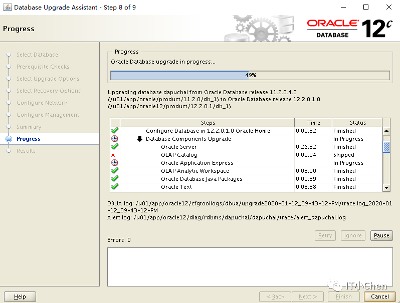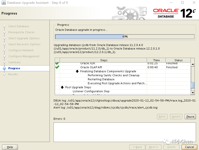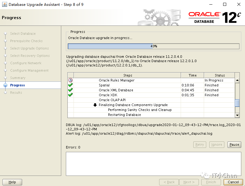 数据库卡住49%很长时间没反应,尝试按下Pause,图标变灰,没出现继续按钮,此时在点下Cancel,升级程序退出;