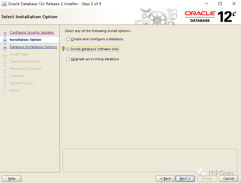 选Install database software only和Upgrade an existing database都可以,Upgrade anexisting database相当于先执行Install database software only在执行DBUA;