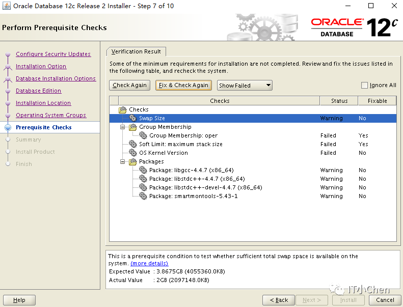 1.1检查磁盘空间、服务器负载、目录权限、系统参数、安装12.2.0.1.0所需packages等;