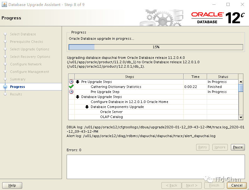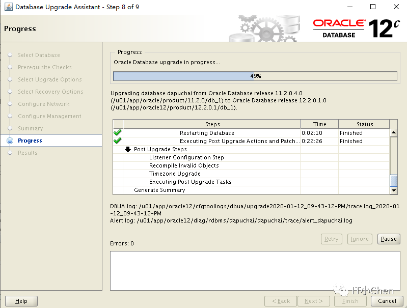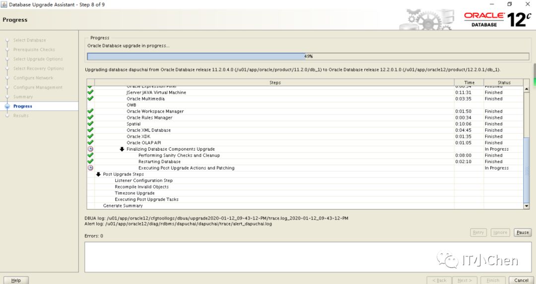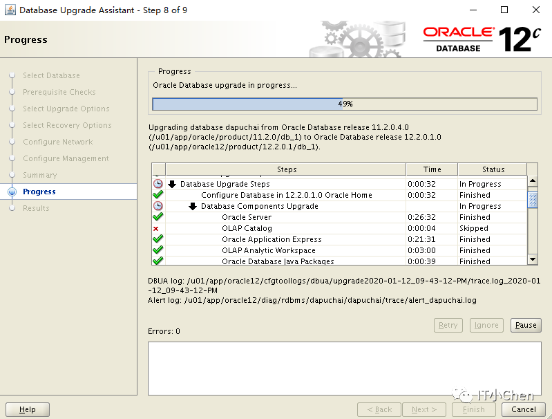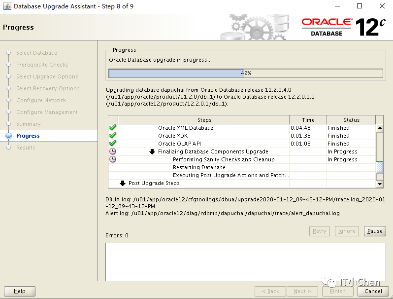 数据库卡住49%很长时间没反应,尝试按下Pause,图标变灰,没出现继续按钮,此时在点下Cancel,升级程序退出;