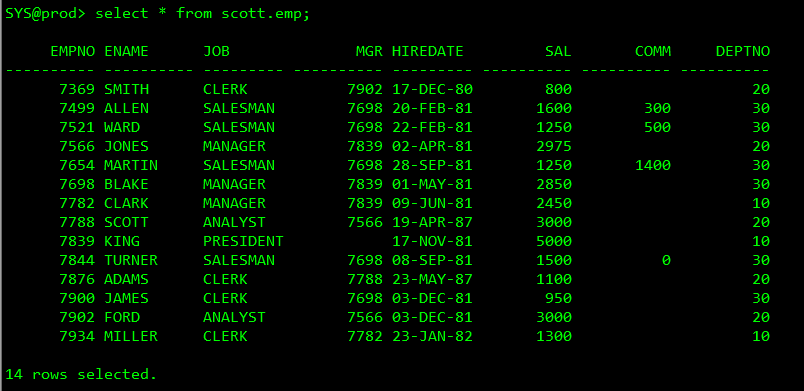 select * from scott.emp;这个语句是要查询scoot用户下的emp表中的所有列的数据。这是一个最简单的select查询语句。