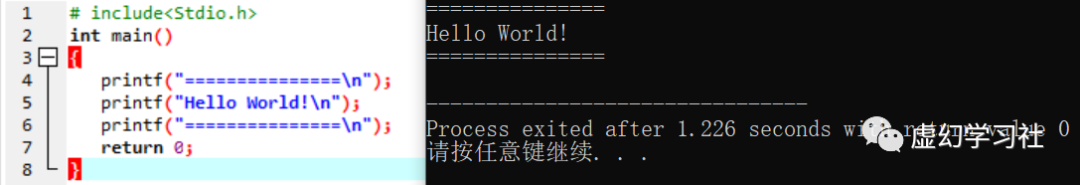 # include<Stdio.h>int main(){printf("===============\n");printf("Hello World!\n");printf("===============\n");return 0;}