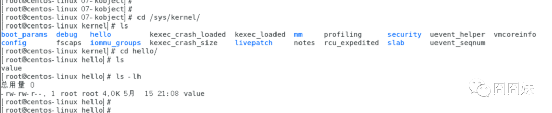 我们make编译一下,并查看一下/sys/kernel/下的文件: