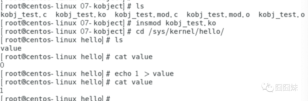我们通过cat来查看value的值为0,这个动作就对应内核态的show_value函数,我们通过echo来设置value文件的值,这个动作就对应内核态的store_value函数。我们深入一些,如果我们有个gpio驱动来通过kobject实现,就可以通过kobject和attribute在sysfs目录下建立交互文件,通过uevent等文件来在用户态操作内核态的gpio驱动。