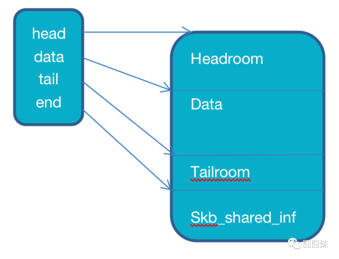 sk_buff_data_t tail指向数据的尾(typedef unsigned char *sk_buff_data_t;)
